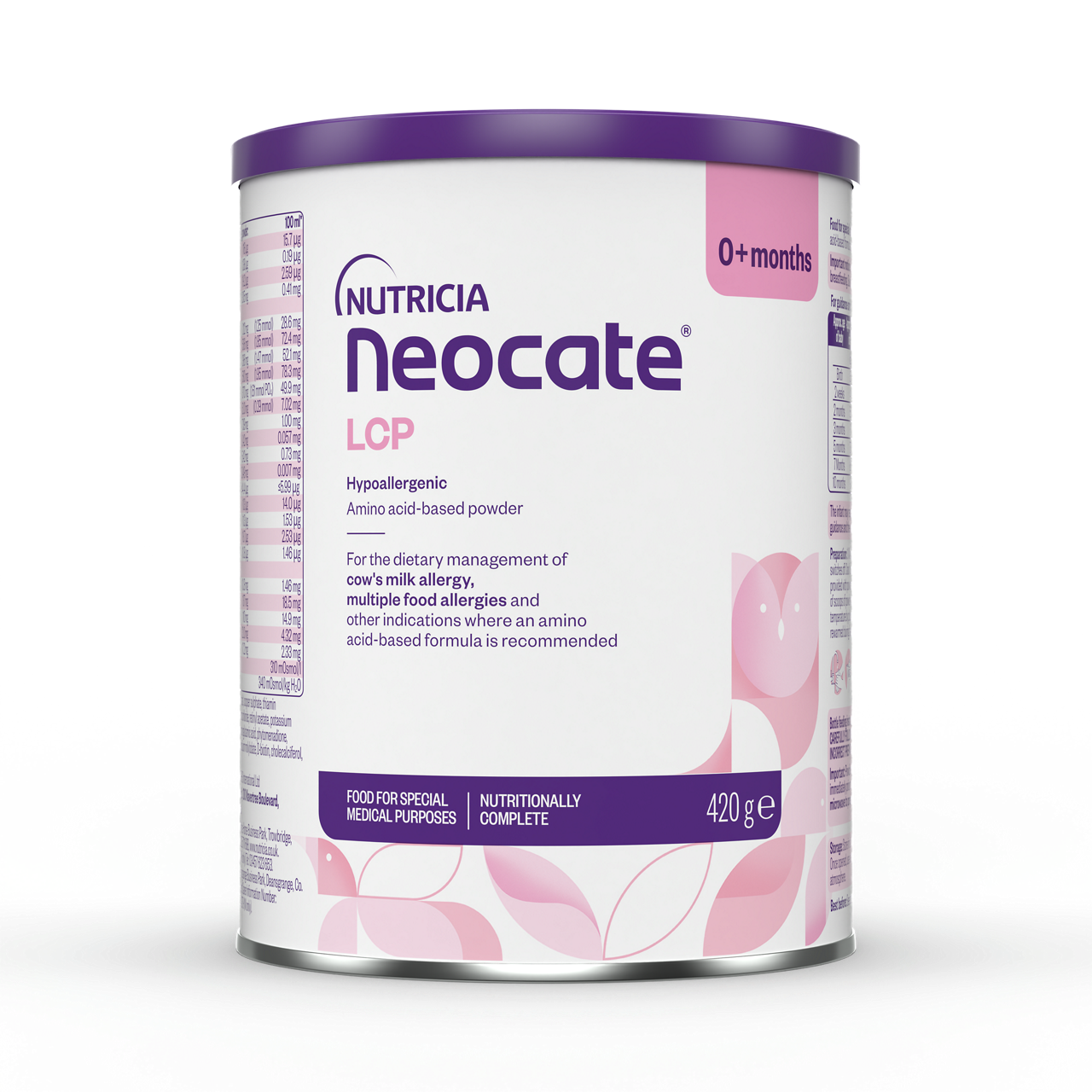 Dried glucose syrup, refined vegetable oils (high oleic sunflower oil, coconut oil, rapeseed oil, sunflower oil), L-arginine-L-aspartate, L-leucine, L-lysine acetate, L-glutamine, L-proline, emulsifier (E472c), L-valine, L-isoleucine, glycine, dipotassium hydrogen phosphate, L-threonine, L-phenylalanine, L-tyrosine, L-serine, L-histidine, L-alanine, calcium hydrogen phosphate, tripotassium citrate, sodium chloride, calcium carbonate, L-cystine, choline bitartrate, calcium glycerophosphate, L-tryptophan, calcium citrate, magnesium chloride, L-methionine, calcium phosphate tribasic, oil from Mortierella alpina, Oil from the microalgae Schizochytrium sp., magnesium L-aspartate, inositol, L-ascorbic acid, antioxidants (sunflower lecithin, ascorbyl palmitate), ferrous sulphate, taurine, zinc sulphate, L-carnitine, DL-alpha tocopheryl acetate, uridine 5'-monophosphate sodium salt, cytidine 5'-monophosphate, nicotinamide, calcium D-pantothenate, inosine 5'-monophosphate sodium salt, adenosine 5'-monophosphate, guanosine 5'-monophosphate sodium salt, copper sulphate, thiamin mononitrate, riboflavin, pyridoxine hydrochloride, retinyl acetate, sodium molybdate, potassium iodide, manganese sulphate, pteroylmonoglutamic acid, phytomenadione, sodium selenite, chromium chloride, D-biotin, cholecalciferol, cyanocobalamin.