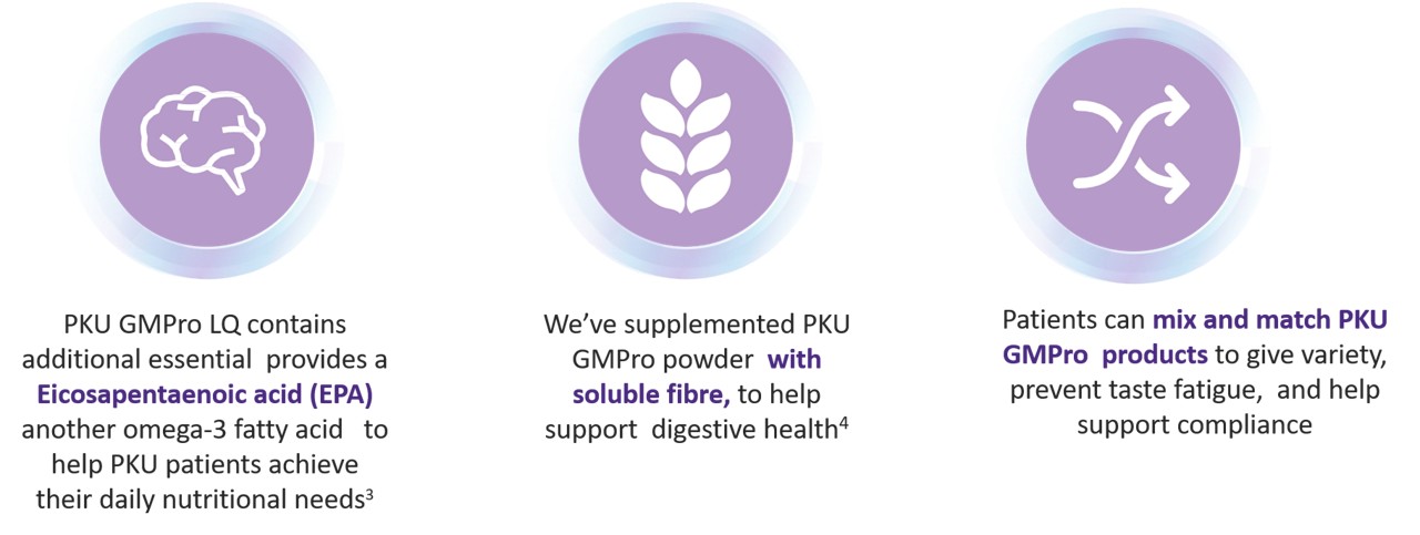• Patients can mix and match PKU GMPro products to fit their lifestyle