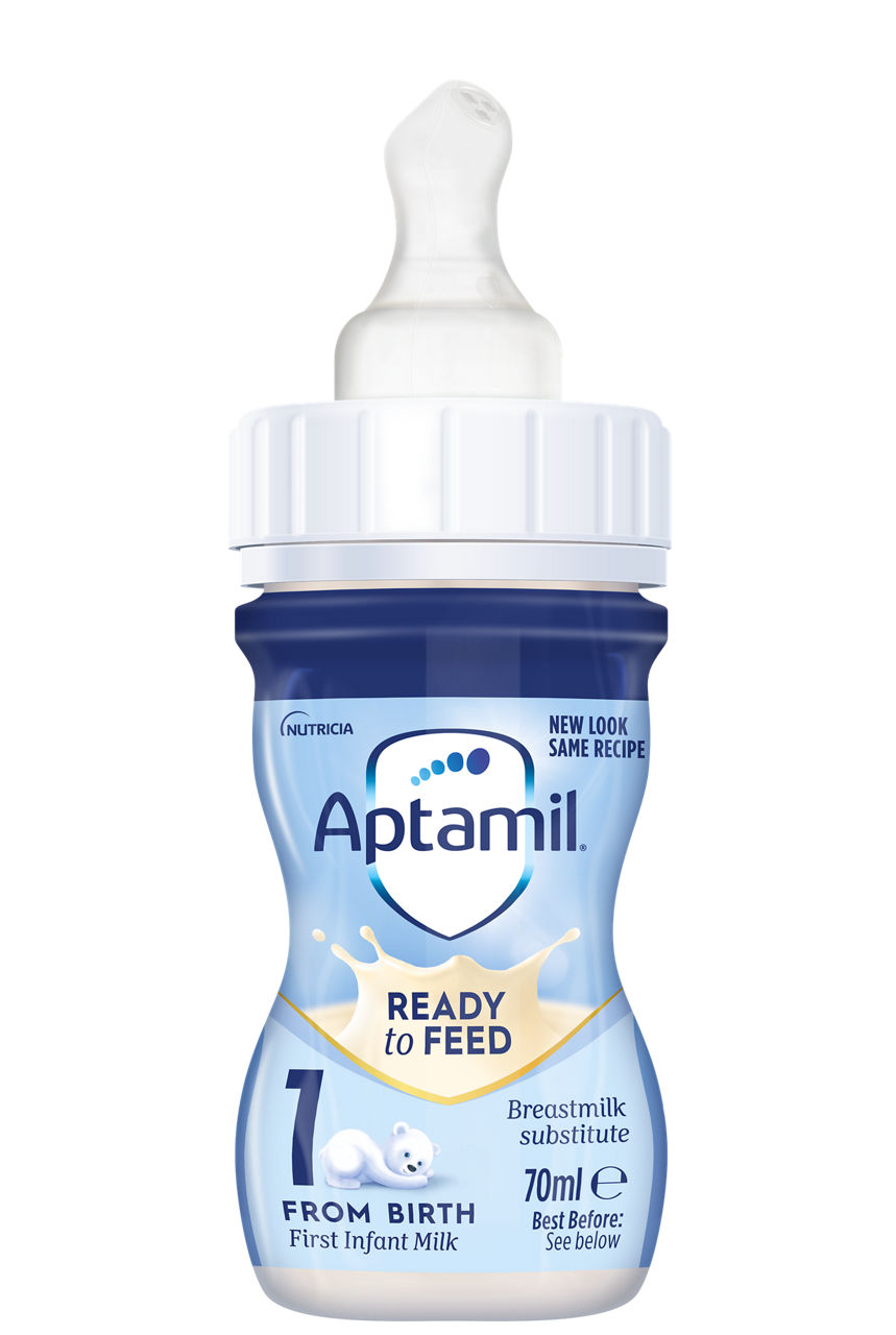 Aptamil First Infant Milk and Aptamil Advanced First Infant Milk are suitable from birth for combination or bottle feeding.