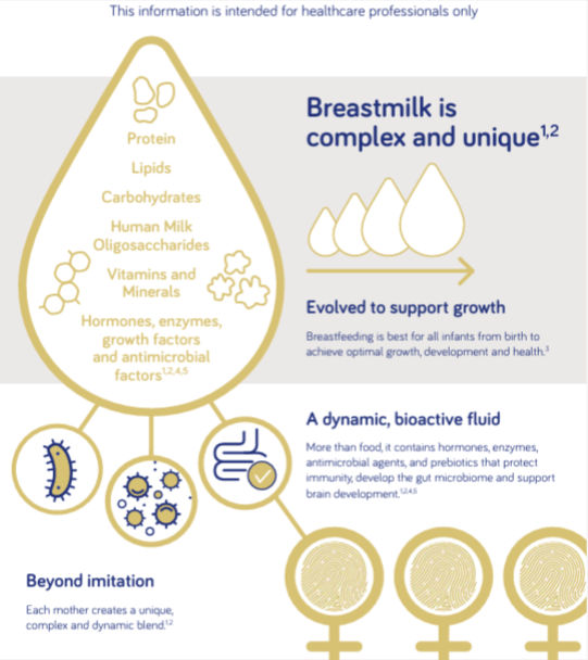 This short video explores the numerous benefits of breast milk for infants and emphasises the unique composition of each mother’s breast milk and its ability to adapt over time. Discover the complex composition of breast milk.