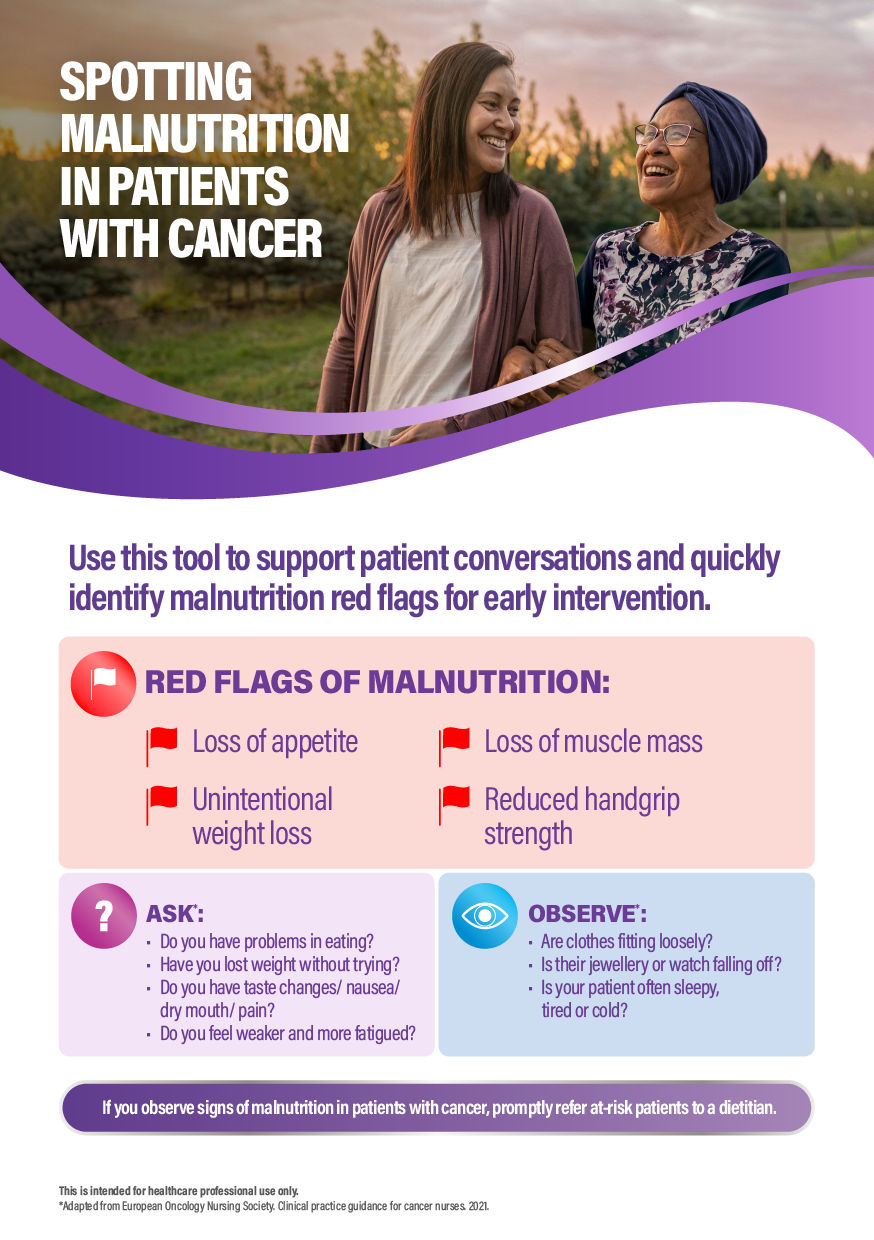 To support you in understanding more about the importance of nutrition, we have created a toolkit of various resources. These resources are designed to assist you in your practice, providing the necessary tools to enhance your knowledge and confidence in nutrition-related care with your oncology patients.
